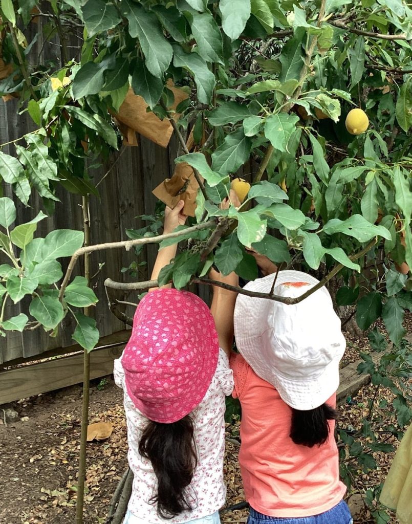 Over the last few years of 2025, the children have been eagerly watching the peach tree in our garden, waiting to see what had grown beneath the little paper bags placed over the fruit last term. Before the holidays, the children helped carefully cover the peaches to protect them from hungry cockatoos and other curious visitors. This week, it was finally time for the big reveal.
